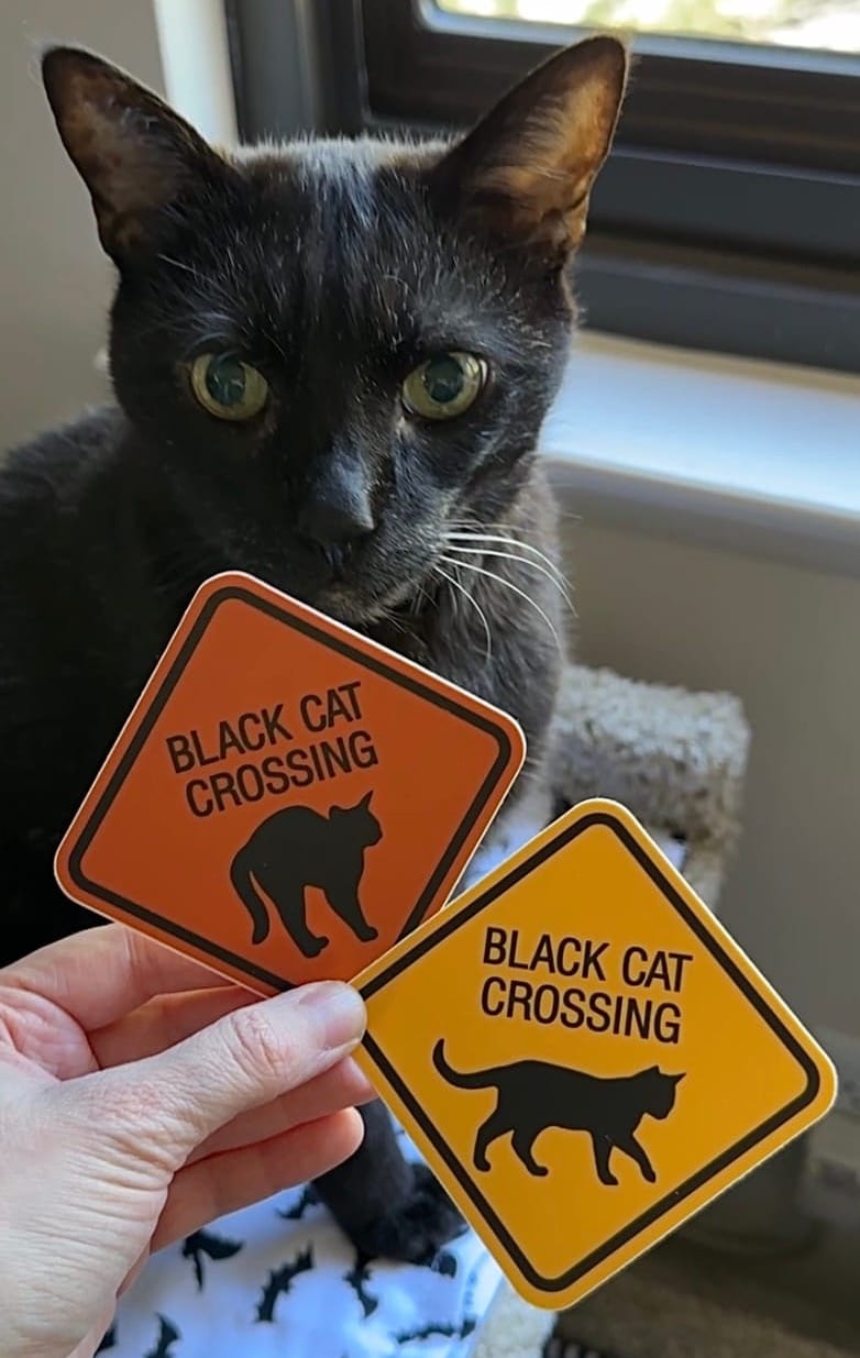 The Black Cat Love Studios Etsy shop, where you'll find black cat stickers, magnets, buttons/pins, bookmarks, greeting cards, stationery, cat memorial gifts, handmade gifts, Halloween gifts, and more! Watch this space for more details.