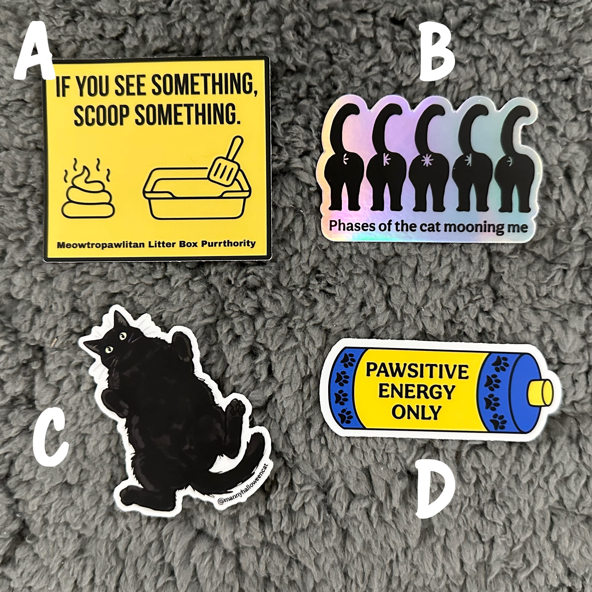 B: This holographic sticker shows the phases of the moon...sort of. 😹 If you like cat butts, you'll love this one!